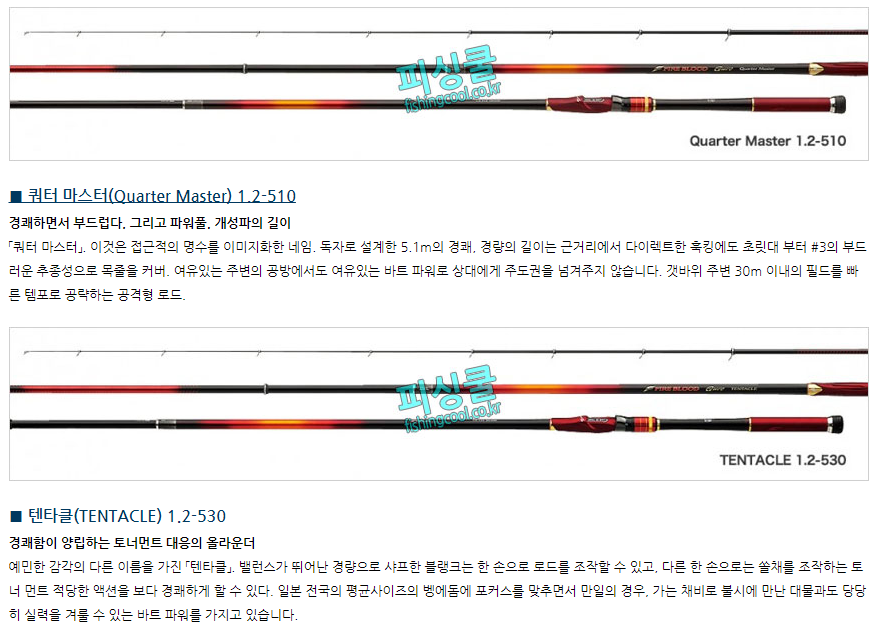 도시 어부 낚싯대는 시마노 벵에돔 전용대인 시마노 파이어블러드 구레 라인업 제품인 것 같습니다.