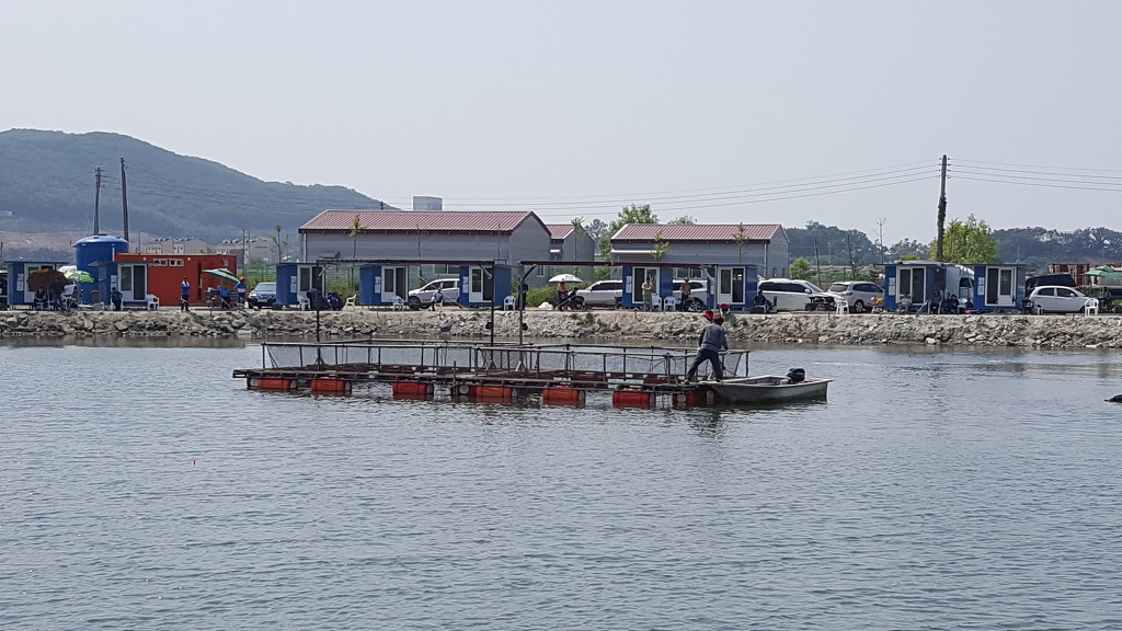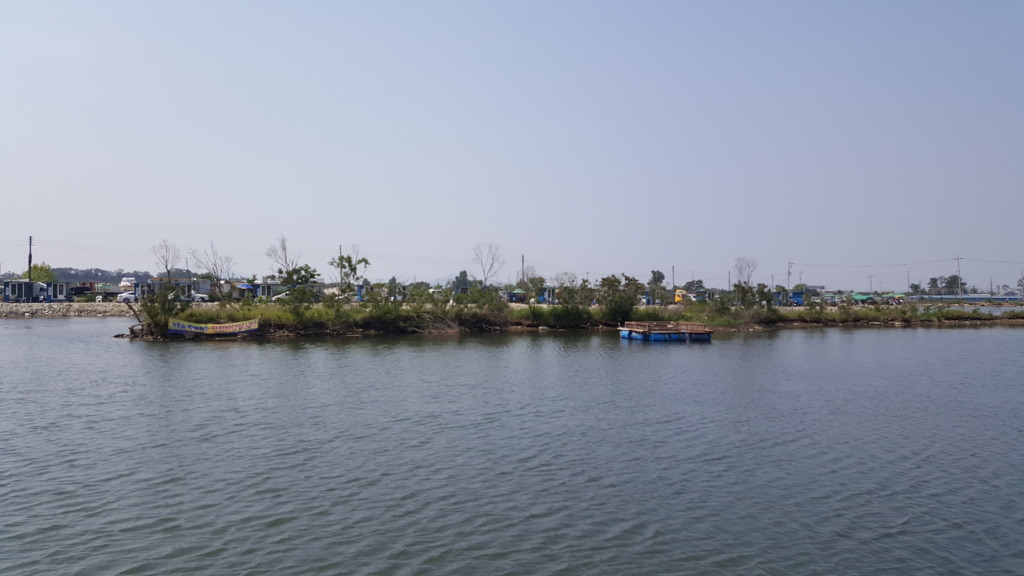 중앙 섬까지 채비를 날리려고 과하게 휘둘렀더니 찌만 섬까지 날아갔다. ㅡㅡ.