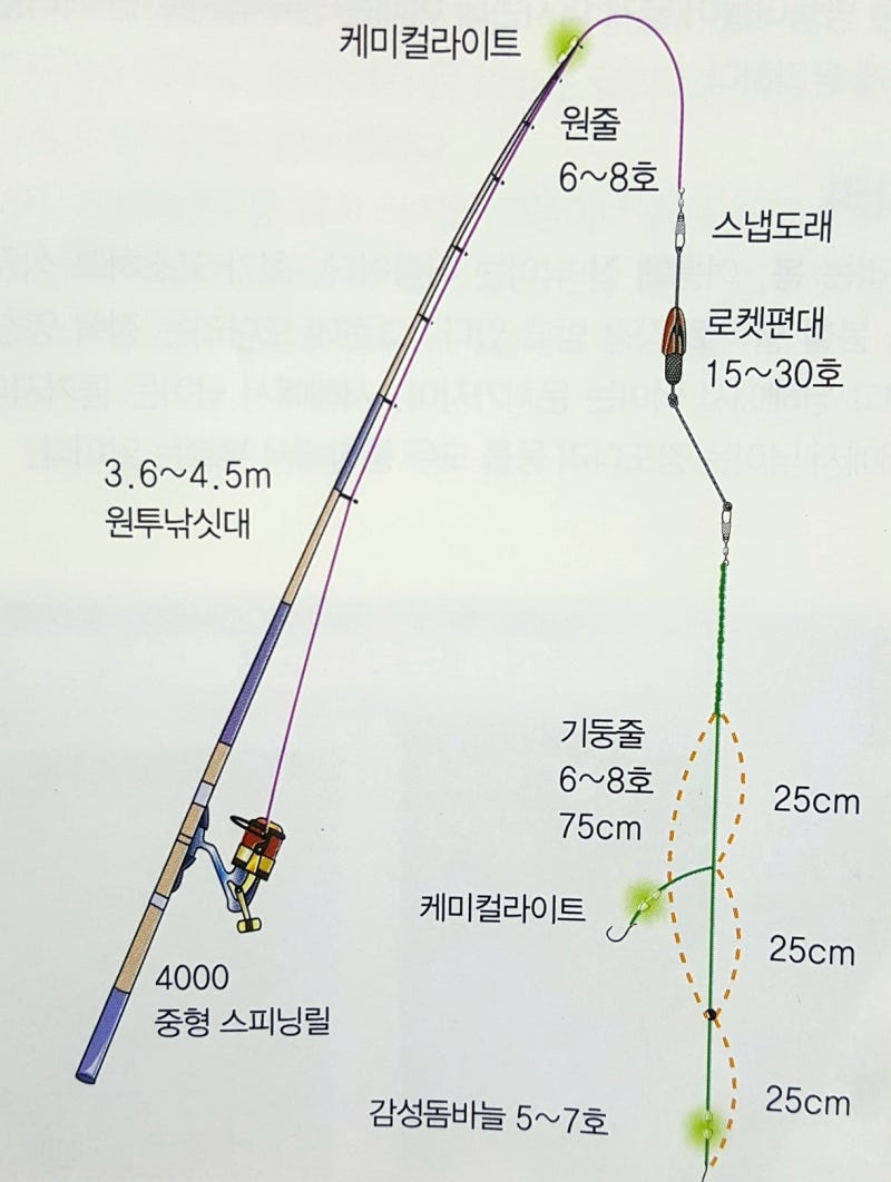 - 채비: 중들물과 중썰물 시기를 노려 낚시.