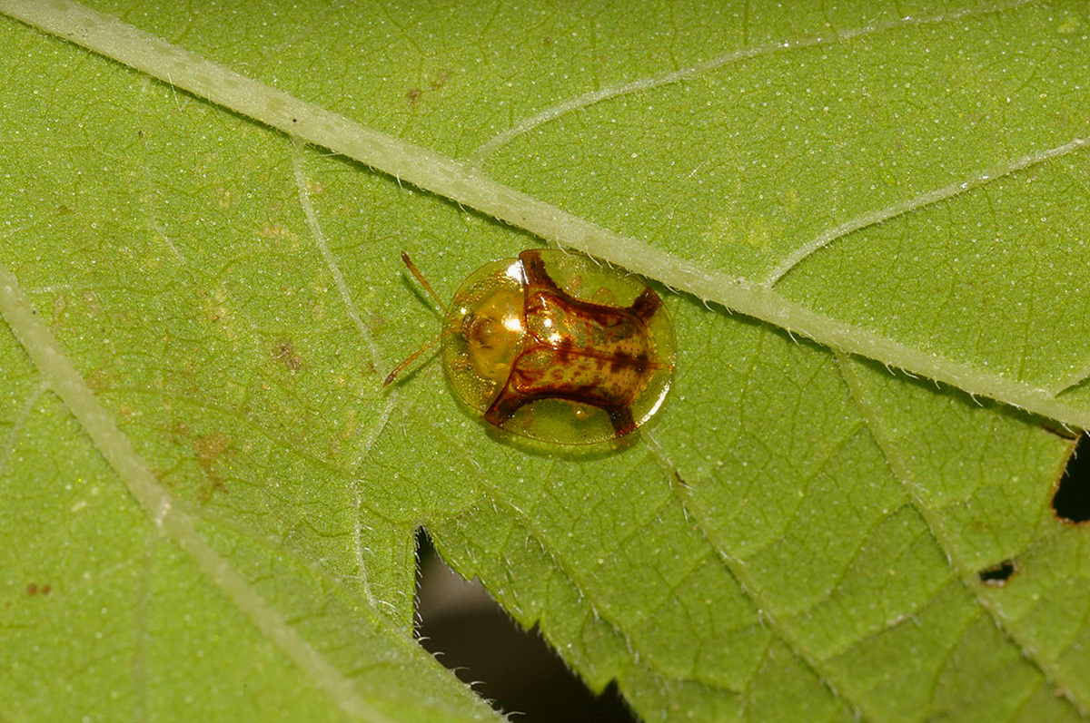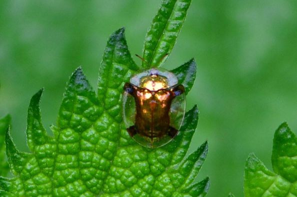 모시 금자라 남생이 잎벌레는 잎벌레과(Chrysomelidae)에 속하는 남생이잎벌레아과(Cassidinae)의 일종으로, 금자라 남생이잎벌레족(Aspidimorphini)에 분류됩니다. 이 잎벌레는 몸 길이가 약 7.0~8.5mm로 비교적 작은 편이지만, 그 화려한 금빛 외관으로 많은 사람들의 주목을 받고 있습니다. 한국 전역에 널리 서식하며, 특히 나무의 잎을 먹으며 생활합니다.