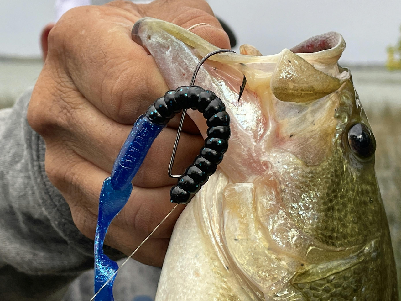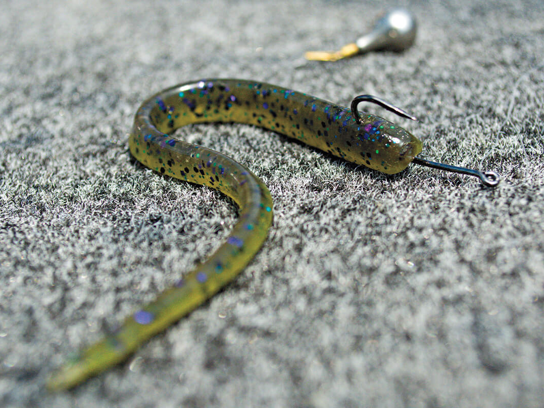 - 구성: 웜 + 오프셋 훅 + 슬림 싱커(구슬로 라인 보호)