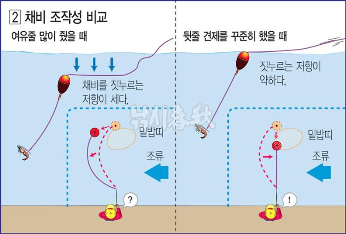 • 조류가 강하면 목줄을 길게 설정하고, 조류가 약하면 짧게 조절합니다.