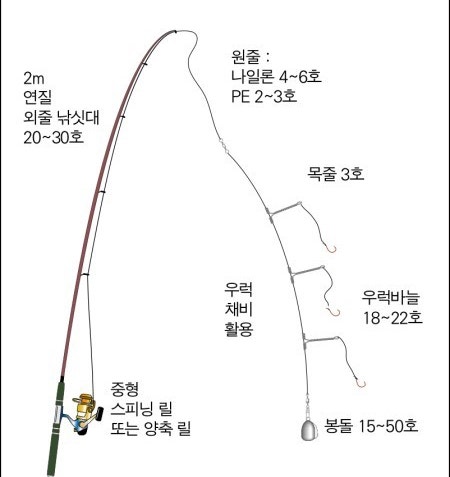 백조기 낚시를 위해 필요한 기본 채비는 다음과 같습니다: