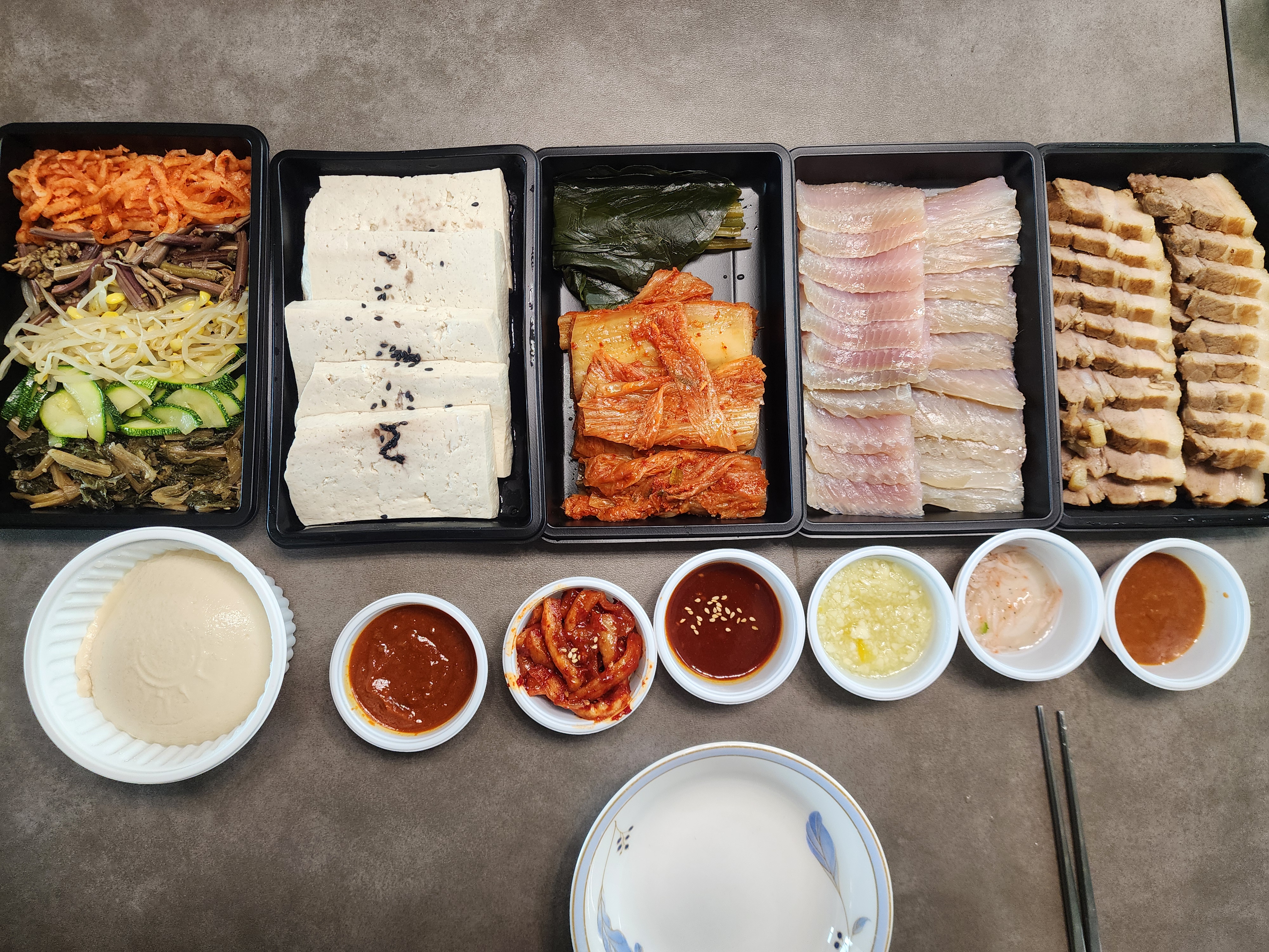 - 쌈무: 홍어, 돼지고기, 김치를 취향에 따라 쌈무에 담아 먹습니다.