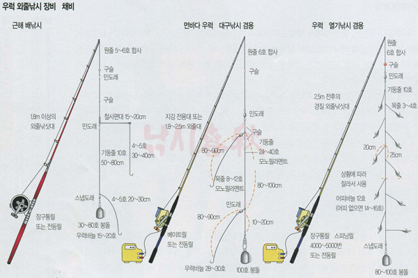• 먼바다 우럭 대구겸용: 100호 이상의 봉돌이 필요합니다.
