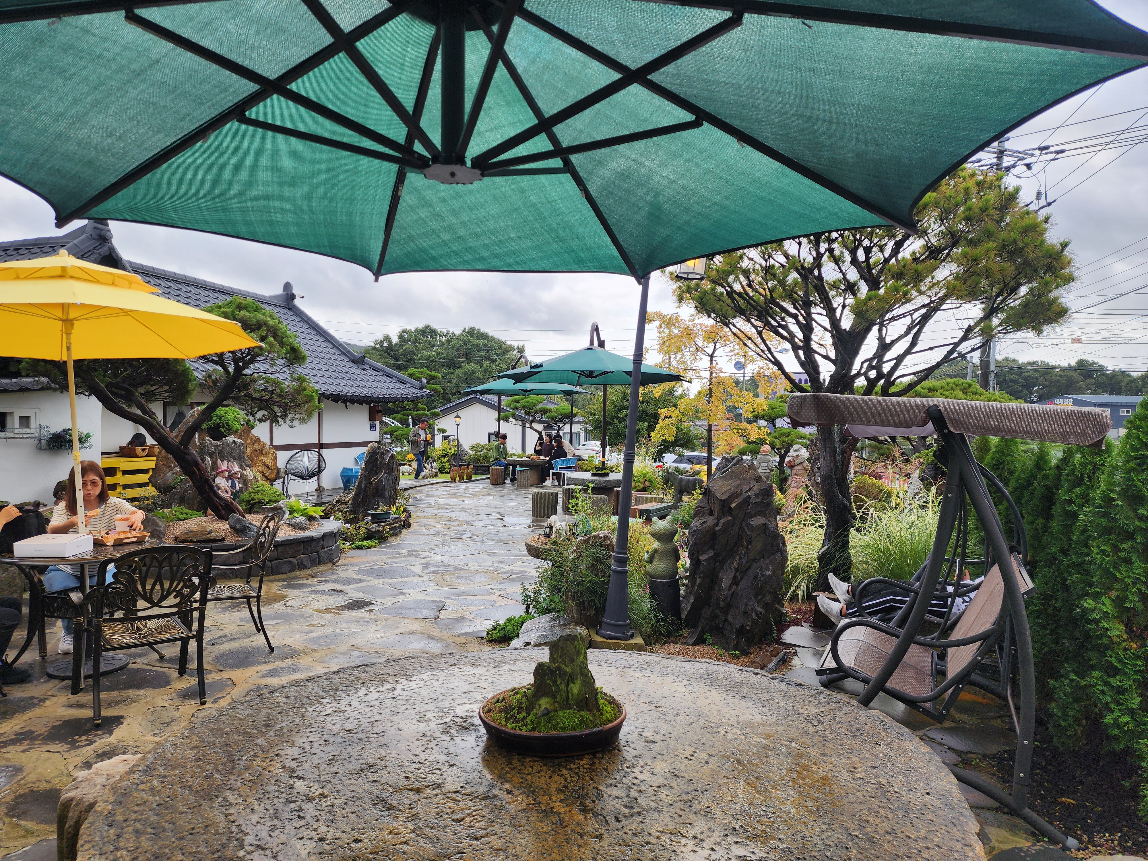 이곳의 하이라이트는 단연 야외 공간입니다. 한옥 마당을 중심으로 꾸며진 야외에는 장독대, 작은 연못, 흙길, 나무벤치, 그리고 귀여운 양 조형물까지 배치되어 있습니다. 모든 요소가 조화롭게 어우러져 있어 마치 시골 할머니 댁에 놀러온 듯한 따뜻한 분위기를 자아냅니다. 정원 곳곳에는 포토존이 마련되어 있어 인생샷을 남기기에도 안성맞춤입니다. 특히 오후 햇살이 비치는 시간대에는 기와지붕 위로 그림자가 드리워지며 고즈넉한 한옥의 매력이 극대화됩니다.