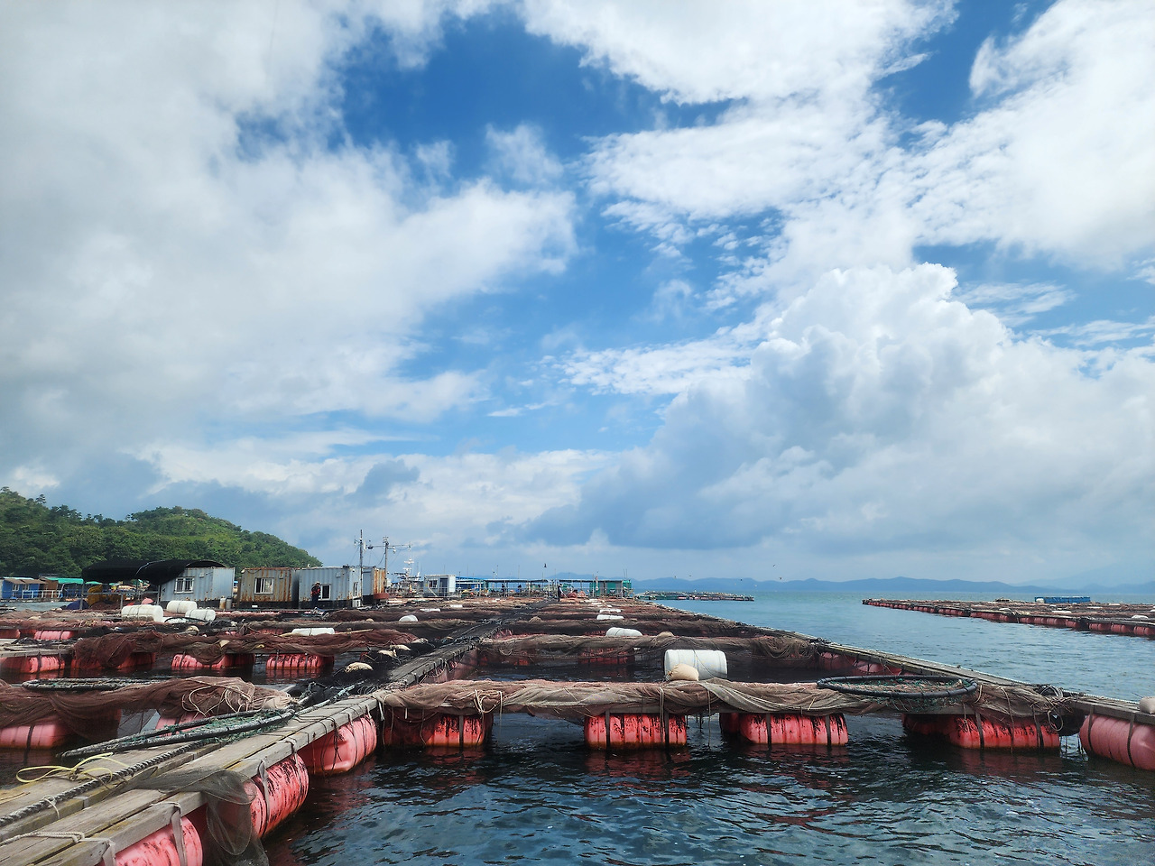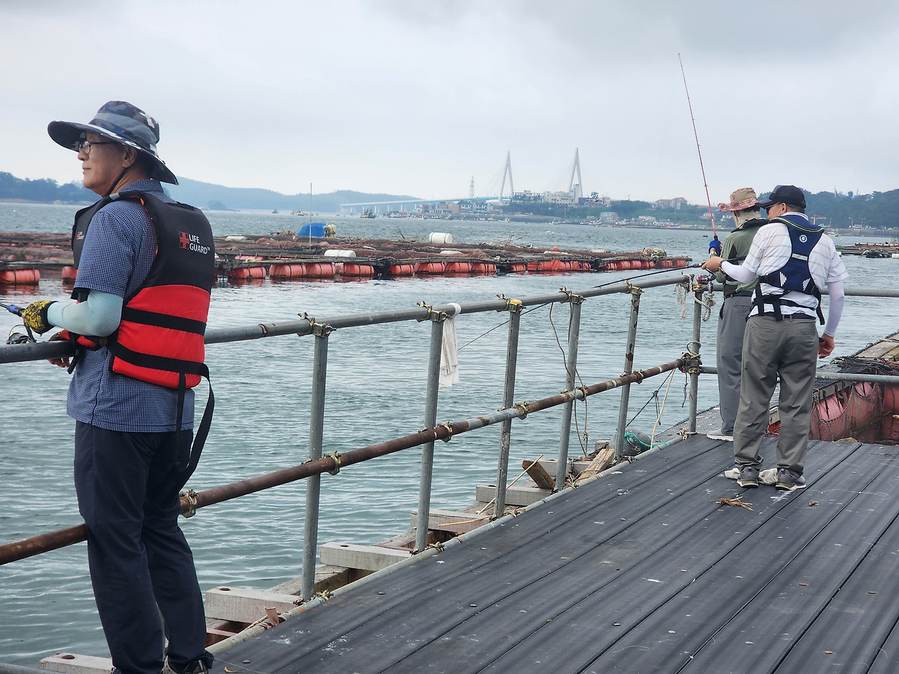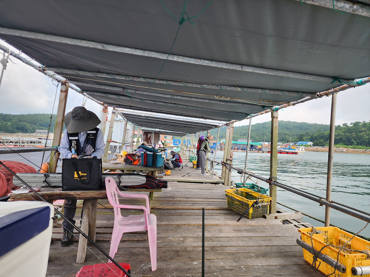 평일이라 손님이 별로 없어 늦게 출발한다더군요. 7시에 제일수산좌대 배가 도착했고, 저 이외에 2~3팀(6명 정도)이 배를 탔습니다. 전부 70대 이상 분들이신 듯했습니다. 나중에 대화를 나눠보니 선하신 분들이었지만, 초반에는 자리 잡은 사람 옆에 줄 엉킬 정도로 채비 넣기, 큰소리로 의미 없는 혼잣말, 좌대에서 안전상 하지 말라는 행동 등을 해서 조금 민폐였습니다.