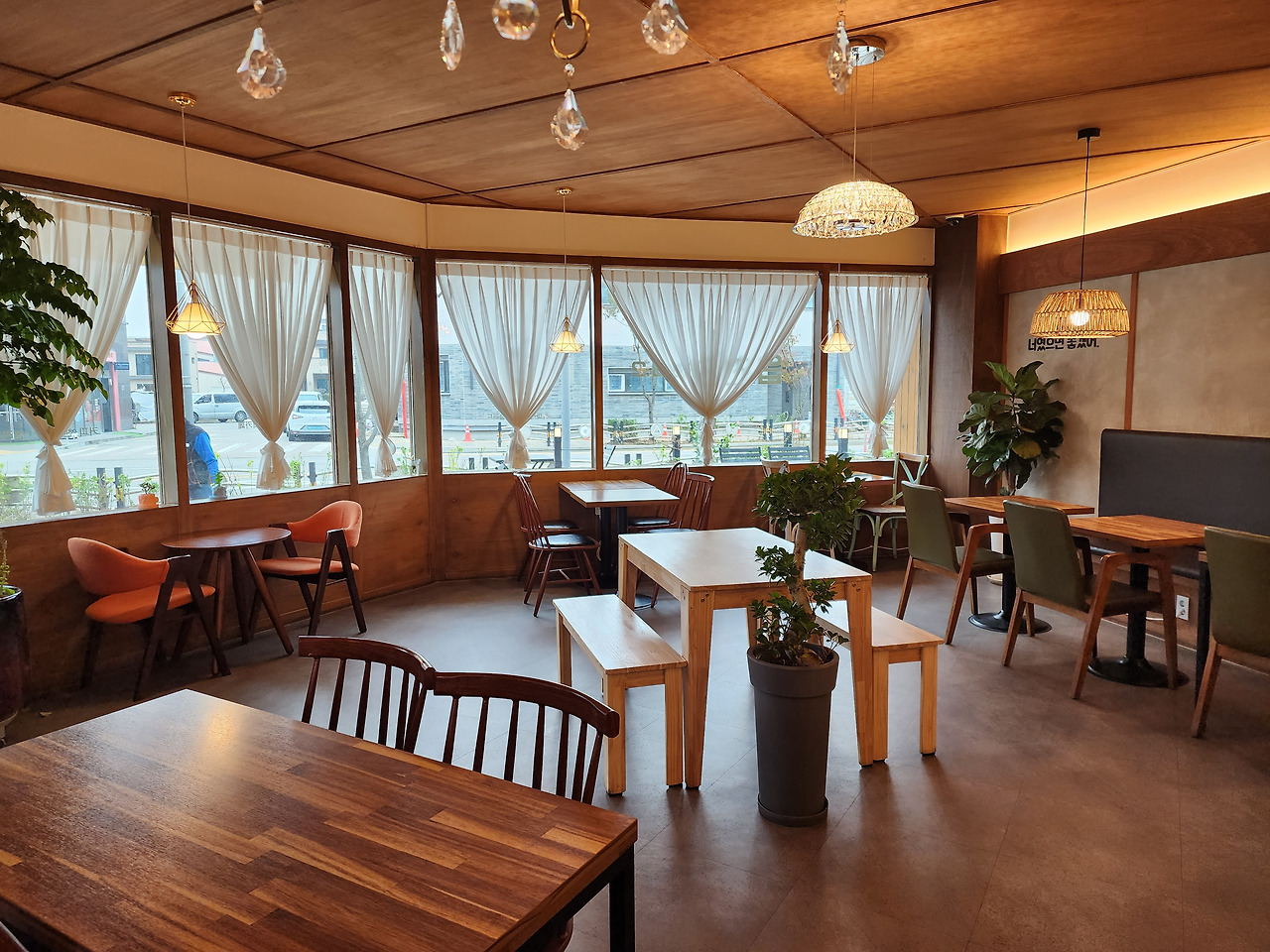 읍천리 382 청라점은 외관부터 내부까지 세심하게 꾸며진 감성적인 인테리어가 인상적입니다. 레트로한 분위기의 카페는 따뜻하면서도 세련된 느낌을 주어 친구들과의 만남이나 혼자 여유롭게 시간을 보내기에 최적의 장소입니다. 넓고 쾌적한 공간은 물론, 아늑한 좌석 배치로 인해 편안하게 식사를 즐길 수 있습니다. 또한, 자연광이 잘 들어오는 창가 자리는 특히 인기가 많아, 방문 시 미리 자리를 잡는 것을 추천드립니다.