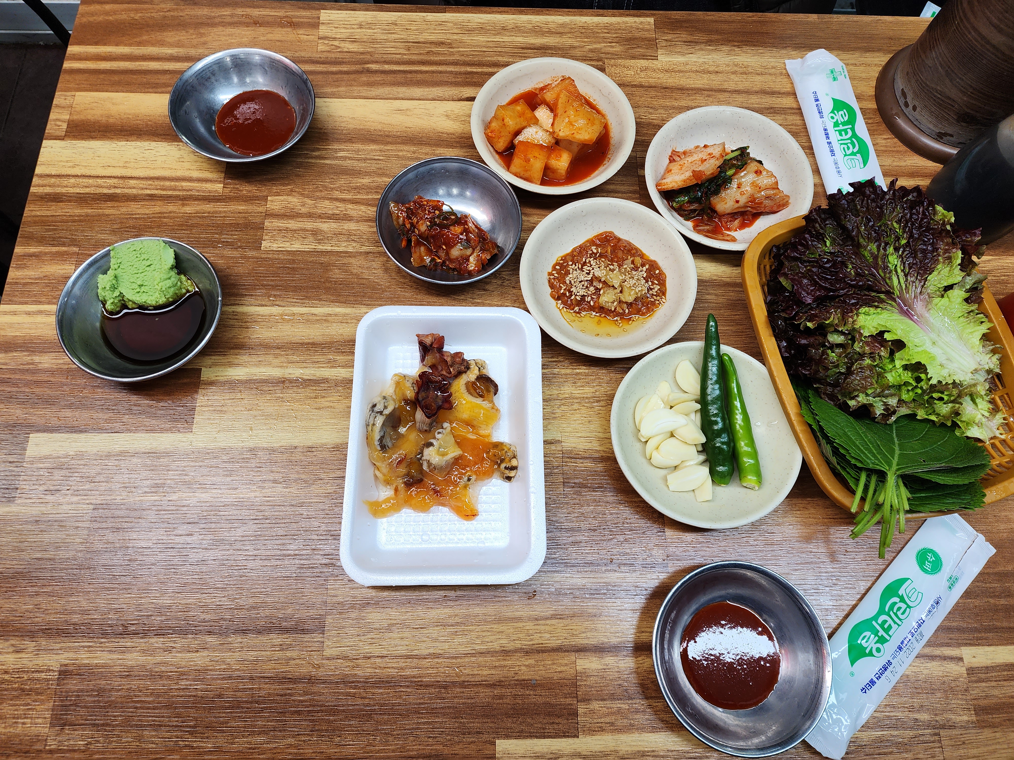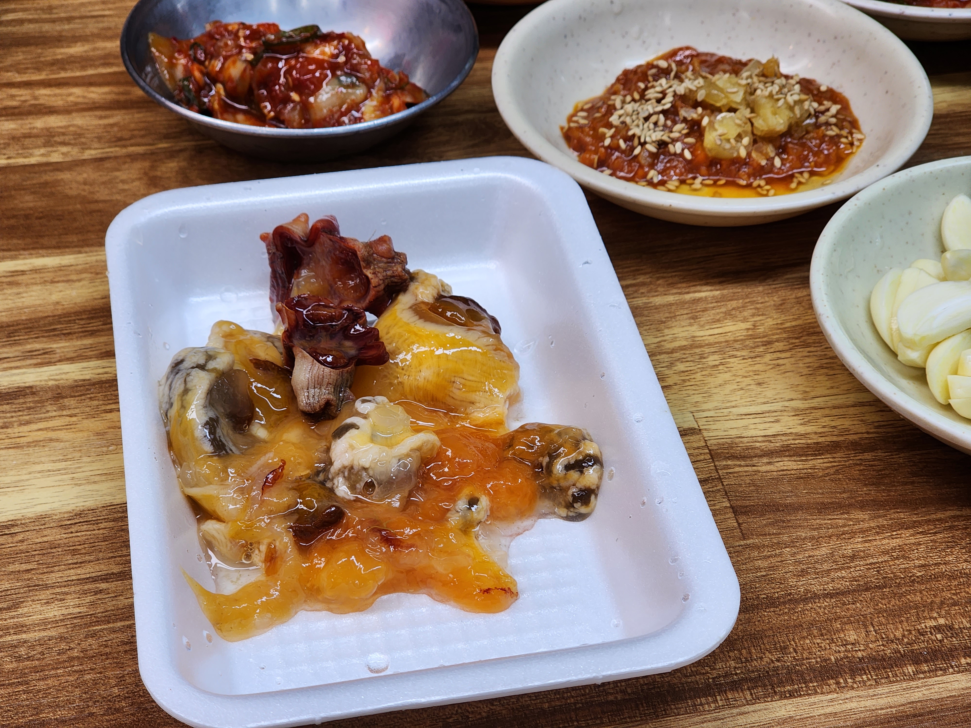 인천 연안부두 종합어시장 내에서는 수산물을 구입하고 곧바로 앉아서 먹을 수 있는 상차림 식당들도 많이 운영되고 있습니다. 그래서 우리는 학생식당으로 이동했습니다.