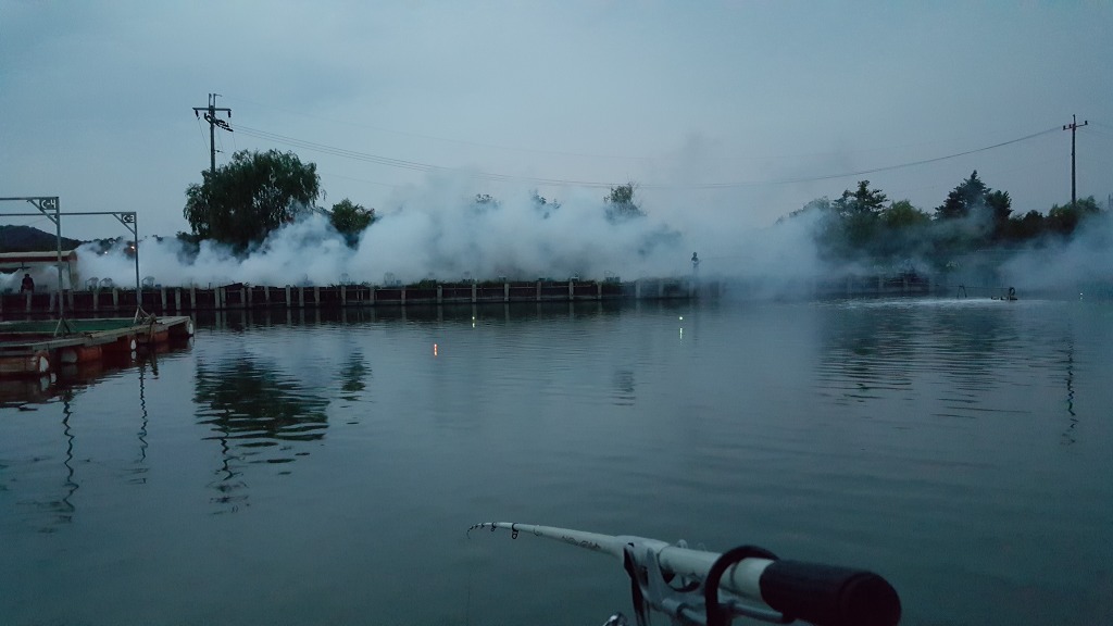 ㅜㅜ 매캐한 연기로 온 낚시터가 가득 찼다.