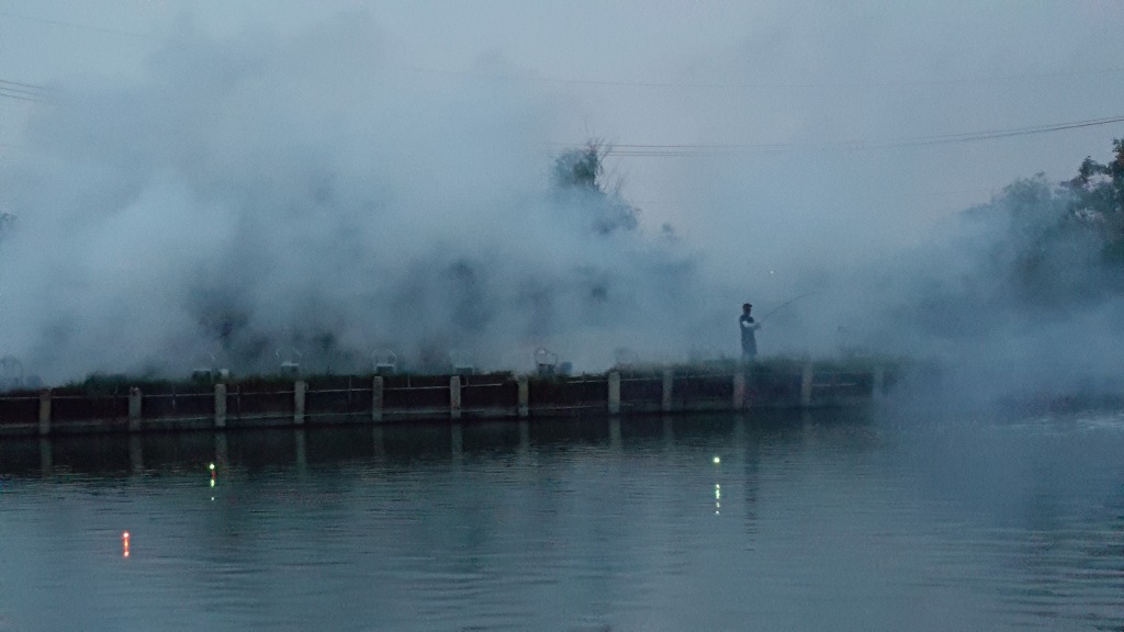 ㅜㅜ 매캐한 연기로 온 낚시터가 가득 찼다.