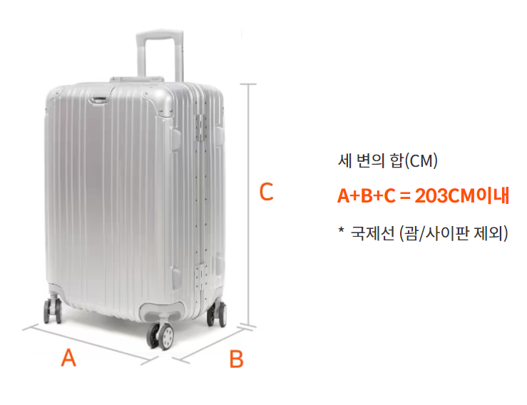 • 개인 휴대품 (핸드백, 가방, 노트북 가방 등) 1개 포함 가능 (35 x 15 x 40cm 이내)