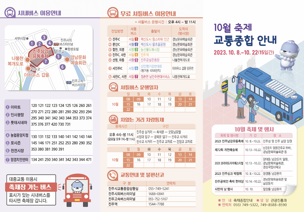 셔틀버스 이용 시 진주 남강 유등축제 무료 주차장