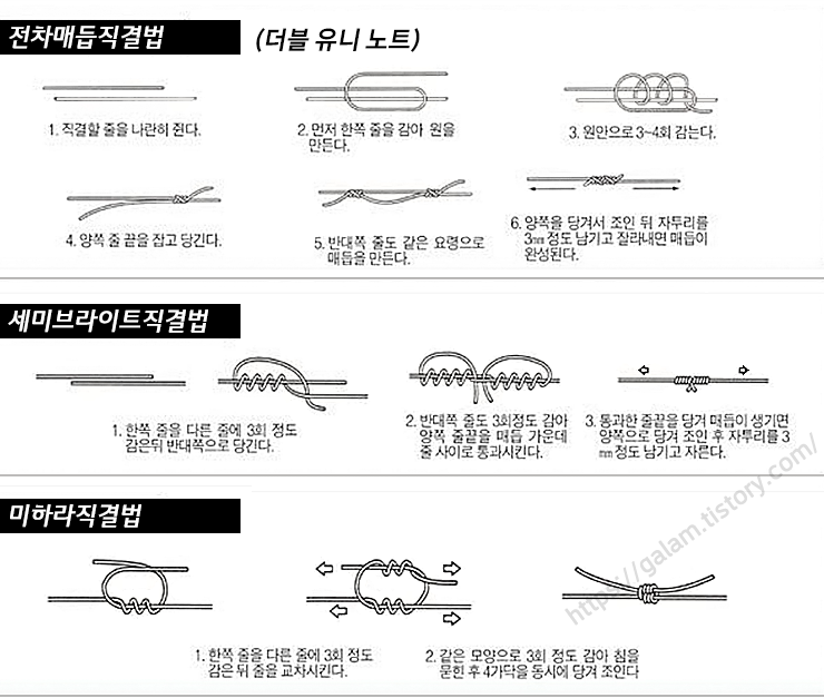 쇼크리더 매듭을 짓는 것은 낚시에서 중요한 기술 중 하나입니다. 숙련된 낚시꾼이 아니라면 도래를 사용하거나 유니노트 묶음을 활용하는 것이 좋습니다. 쇼크리더 매듭법을 연습하면 시간이 오래 걸릴 수 있으므로 초보자들에게는 미리 연습해두는 것이 좋습니다.