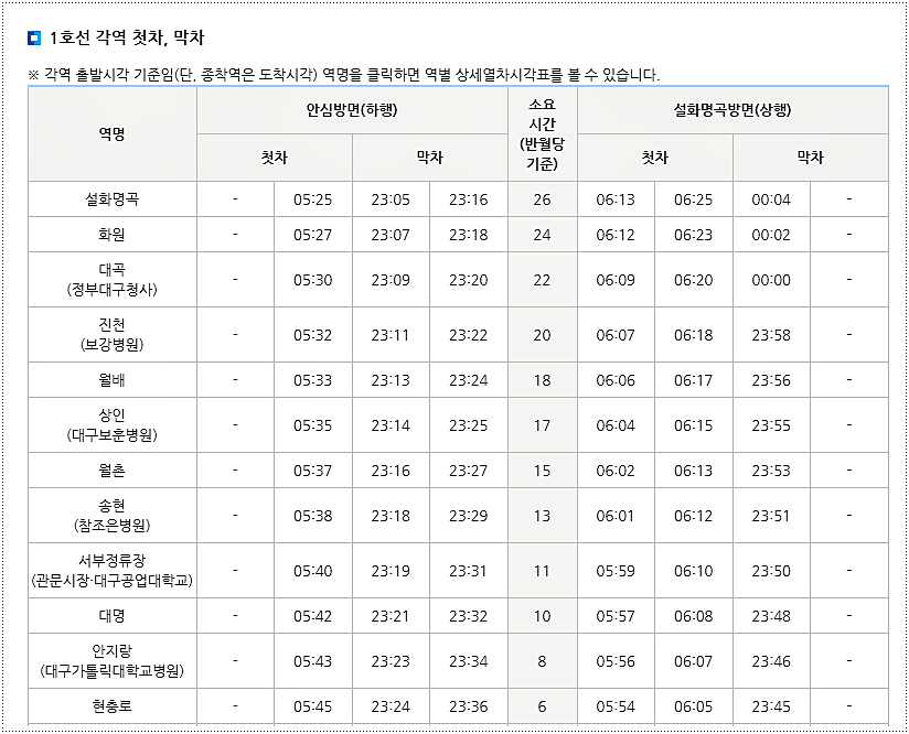 대구 지하철 1호선 시간표