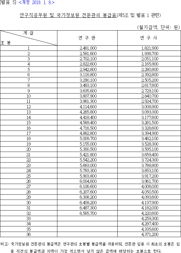 오늘은 2019년 공무원 월급표를 정리를 해봤는대요